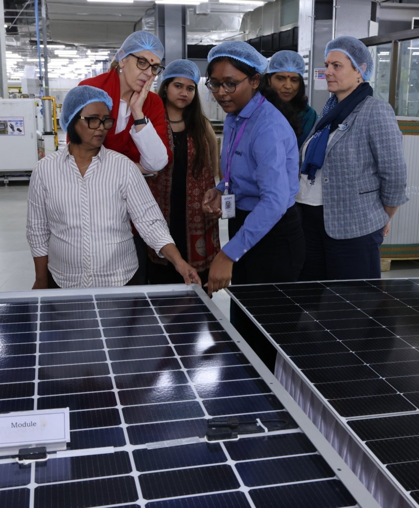The delegation first visited Khavda, a remote site in western India’s arid Kutch district, where Adani Green Energy, the largest renewables company in India, is developing the world’s largest clean energy plant. Spanning an area five times the size of Paris, the 30 GW solar and wind energy project will play a critical anchor role in meeting India’s rising energy demands with clean, affordable and reliable power. The ambassadors saw firsthand how the renewables project is integrating cutting-edge technology with sustainable development, including the Energy Network Operations Centre (ENOC) overseen by women engineers.