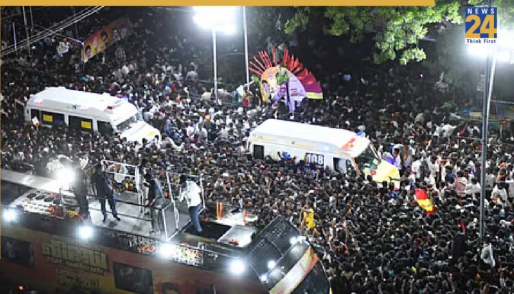 witnessing the dire situation, teh actor paused his speech and threw water bottles to the crowd from his campaign bus, an attempt at pacifying the situation after a 6-hour delay further worsened the situation. The stampede was triggered when a group of supporters fell while trying to get closer to the bus actor Vijay was addressing them. Once the stampede erupted, even ambulances that were stationed at the venue could not pass their way through the dense crowd.