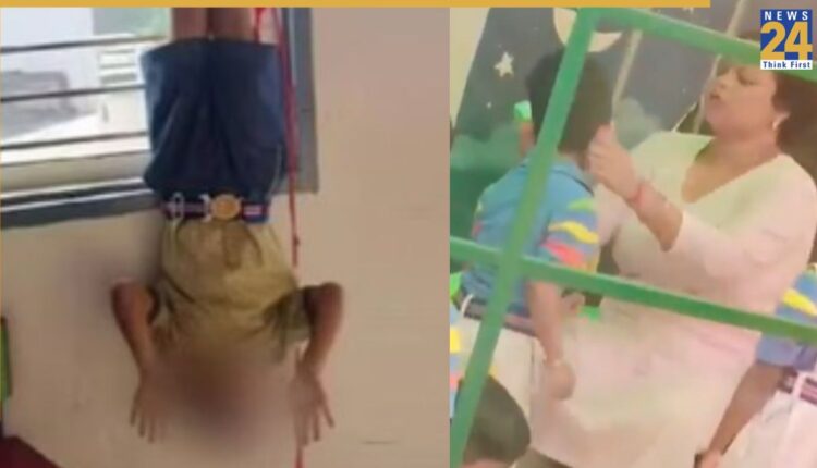 Haryana: A shocking case of child abuse has recently come to light in Haryana’s Panipat, where a 7-year-old boy was tied and hung upside down from a window as punishment for not doing his homework. Two disturbing videos from the school located on Jattal Road have gone viral on social media platforms. The clips show the brutality of the principal and staff members towards the young students.