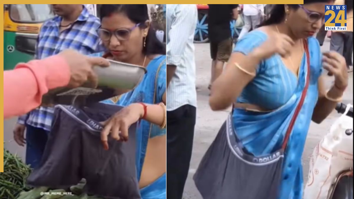 ‘Jugaad’—a word well-known among Indians. For every problem, we find a solution. For us, discarded items always spark new ideas. Old clothes turn into cleaning rags, glass bottles become beautiful showcase pieces, and the list goes on. A video is going viral on social media where a woman can be seen in a grocery market, with a bag stitched using men’s underwear. Yes, you read it right!