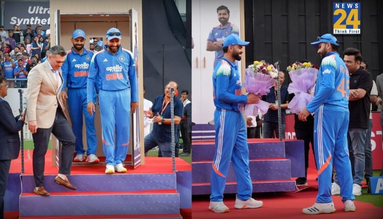 The BCA Stadium in Kotambi made history today by hosting a men’s international game for the first time. To mark this milestone, the association chose to honor the two pillars of modern Indian cricket, Rohit and Kohli, before the match began.