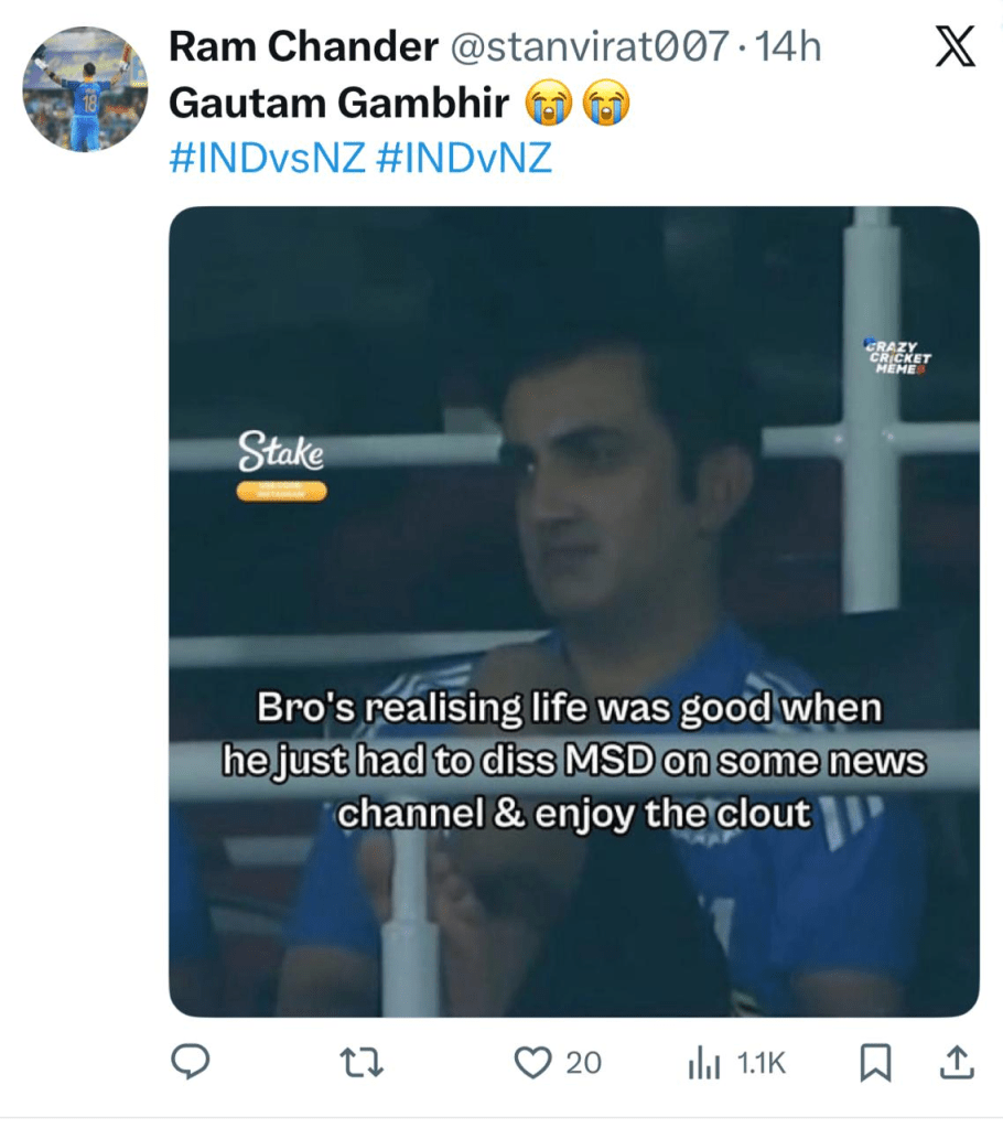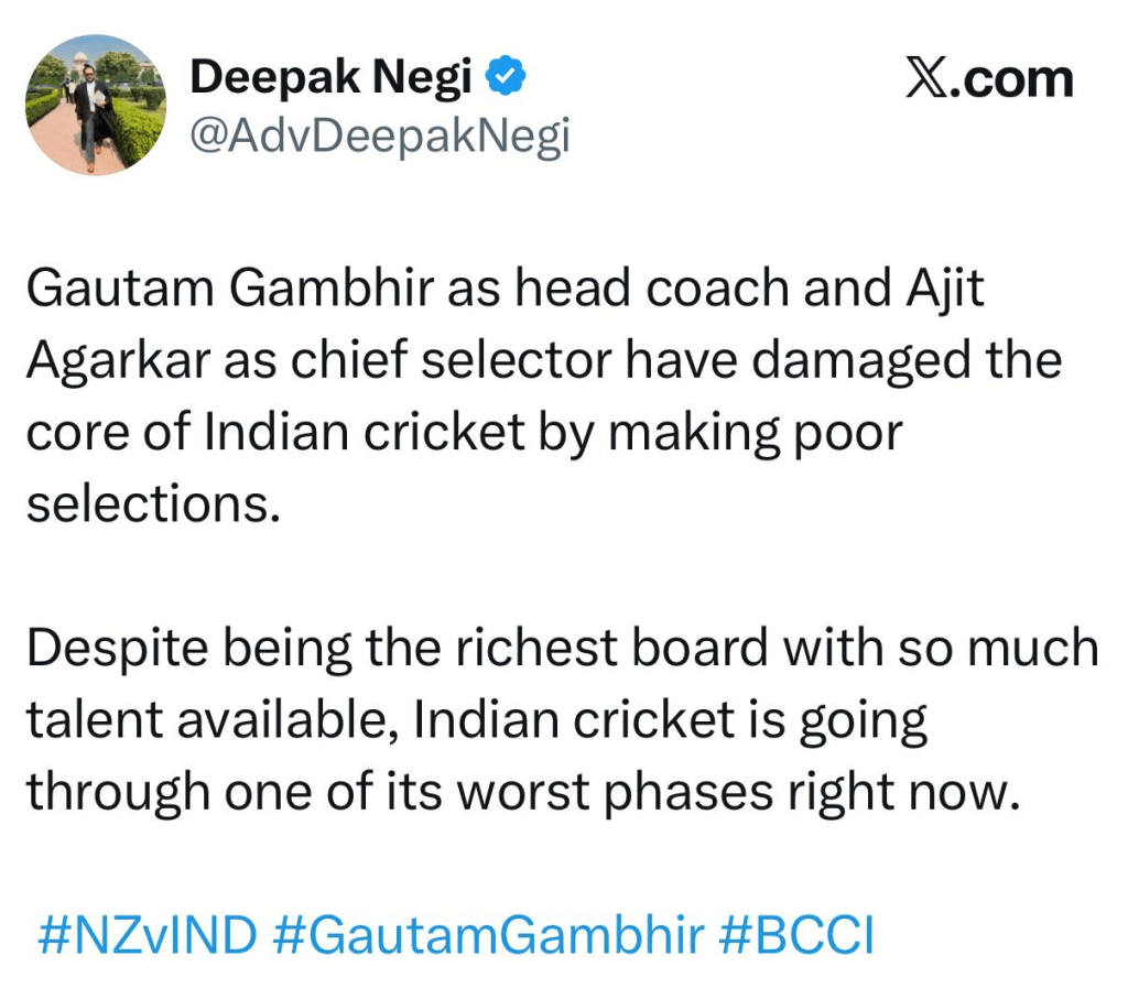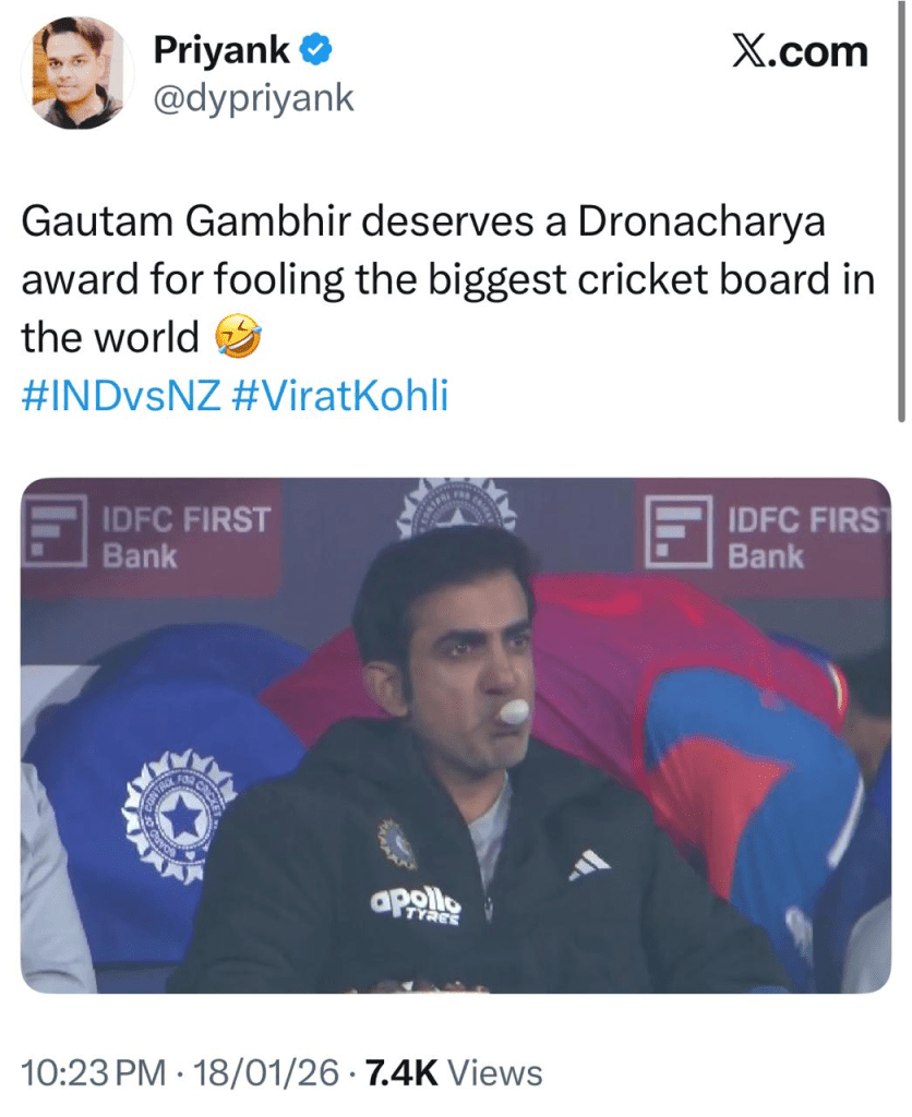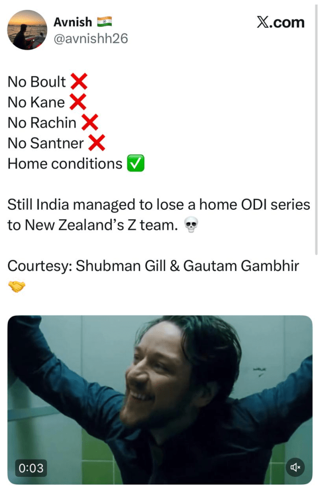Fans immediately fired shots at Gambhir after the loss as in his stint as India’s head coach India has faced multiple humiliating losses. Although the team lifted the Champions Trophy in 2025 under his guidance, defeats in bilateral ODI series against Sri Lanka, Australia, and now New Zealand including a home loss have raised concerns among supporters and pundits alike.