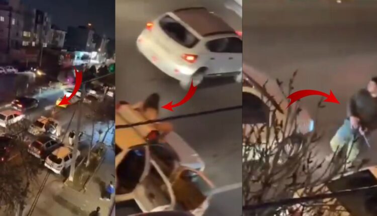 In a shocking CCTV video that went viral on social media, a woman is seen taking off her clothes in protest and jumping onto a police car in Mashhad city, Iran. The video shows her yelling at armed officers while standing on the car’s hood in a busy street.