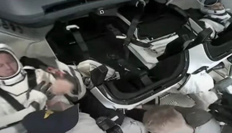 The crew were seen donning spacesuits ahead of the hatch closing of the Dragon spacecraft.
