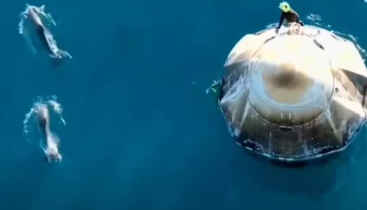 There are a bunch of dolphins swimming around SpaceX’s Dragon capsule. They want to say hi to the Astronauts too! lol pic.twitter.com/sE9bVhgIi1